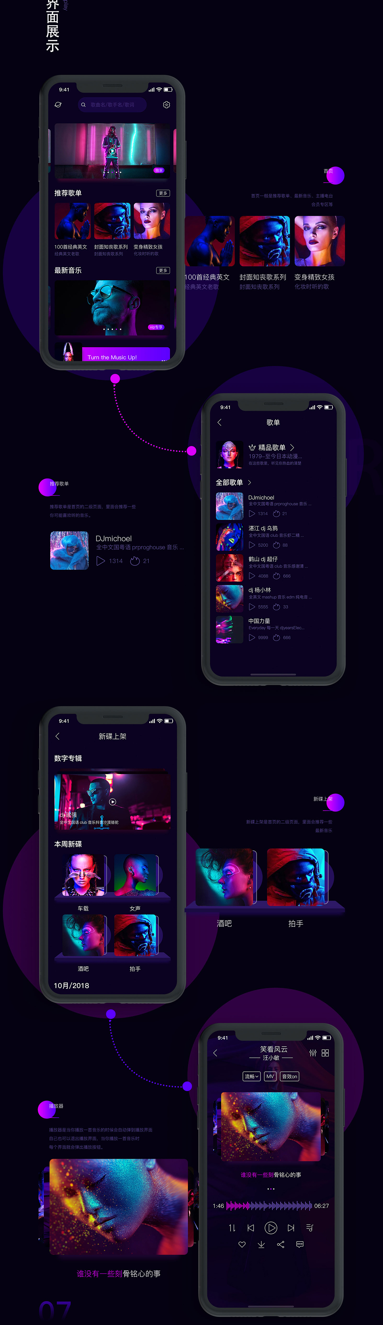 目前主流的音乐应用,都有其独特的品牌色,而明亮的色彩是大部分音乐播放应用的选择,是对音乐品牌识别的一个锦上添花