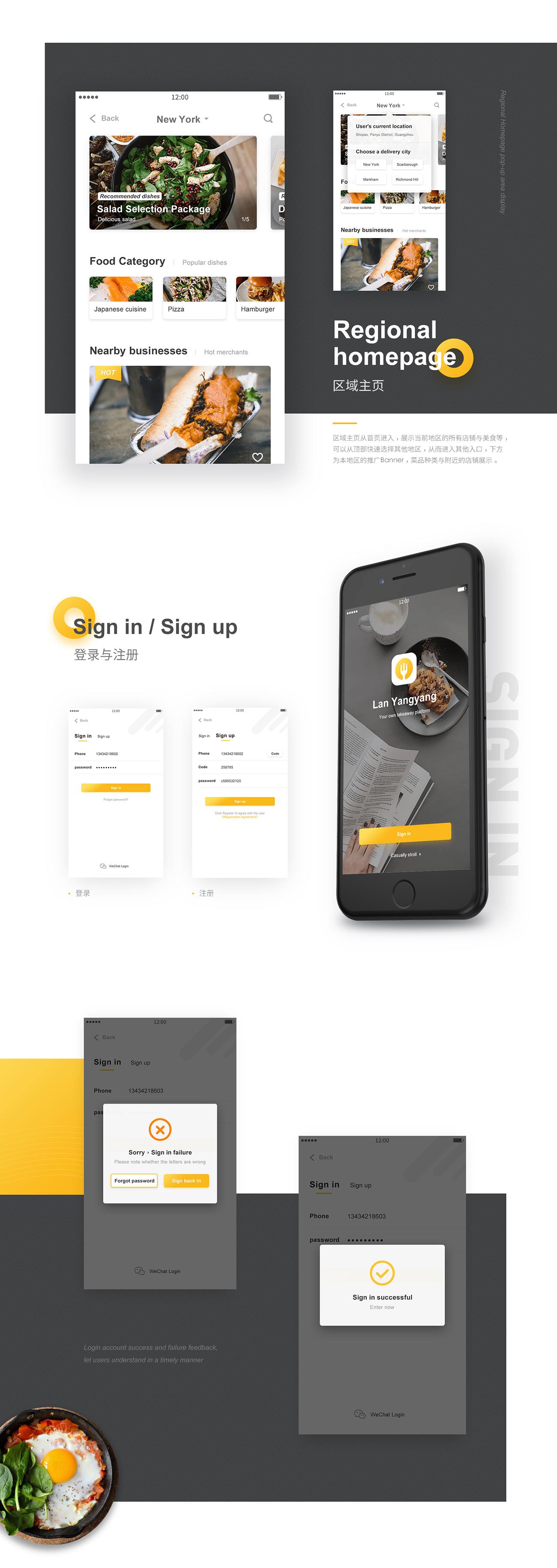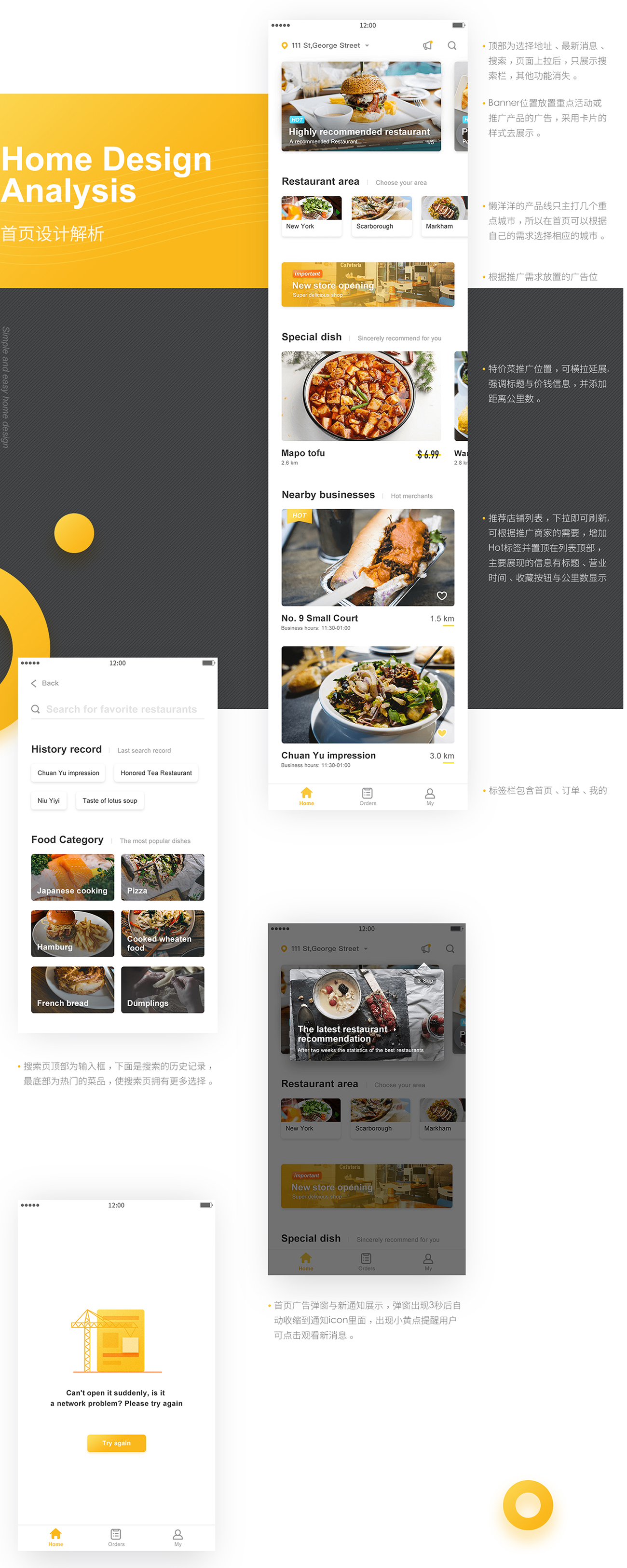这是一款为多伦多华人提供服务的订餐平台,用户群一般为学生、白领等对视觉上追求简约、舒适的产品, 流程简易而顺畅