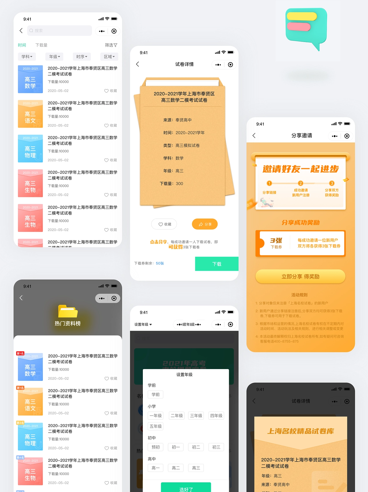 在线在获客渠道单一的背景下,力争向上拓宽渠道。维护一个试卷资料库,包含各大名校的的资料,且持续更新。希望能成为家长必备的小程序。